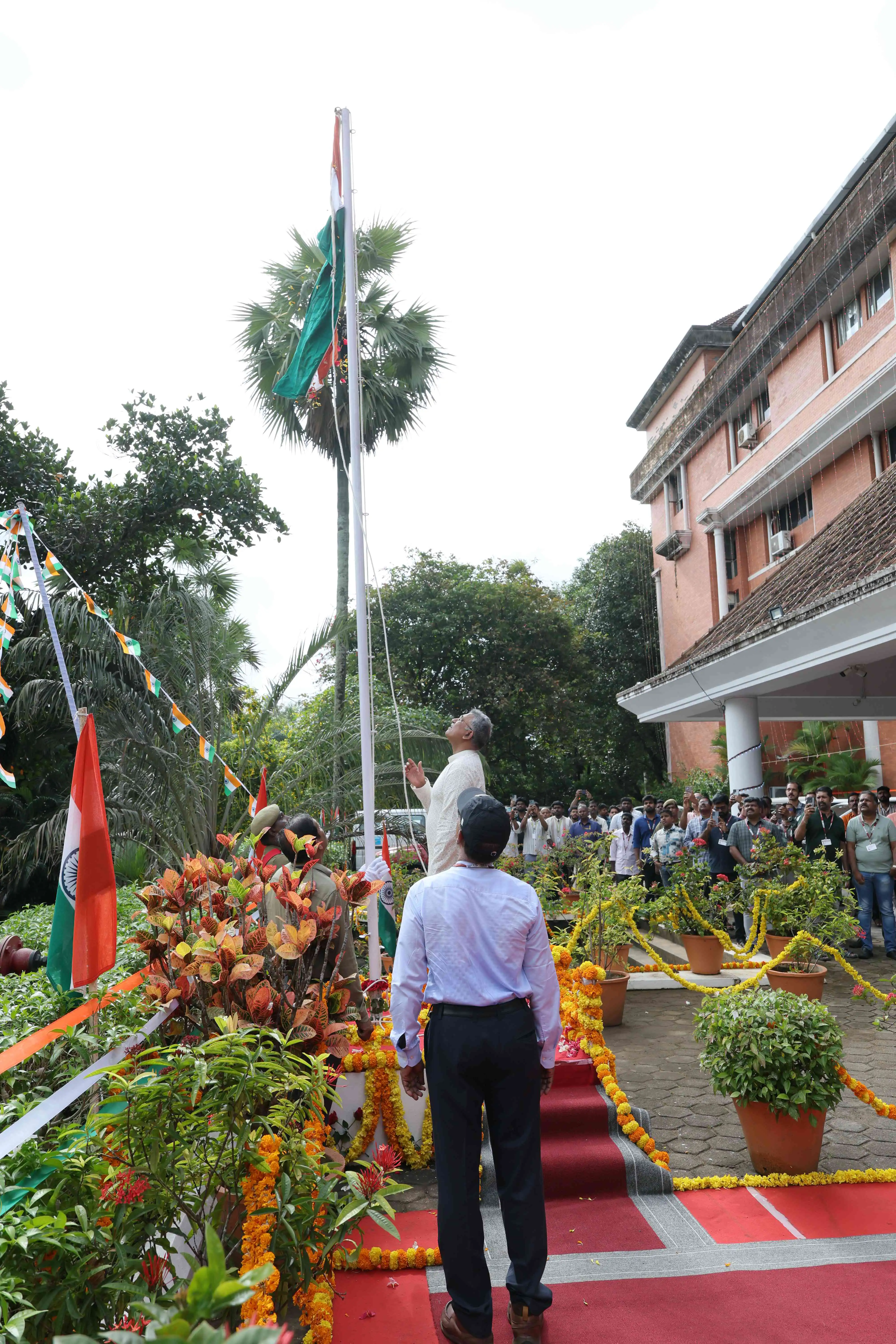 Professor Chandrabhas Narayana, Director, hoisted the national flag in the second campus (C2) at Akkulam
