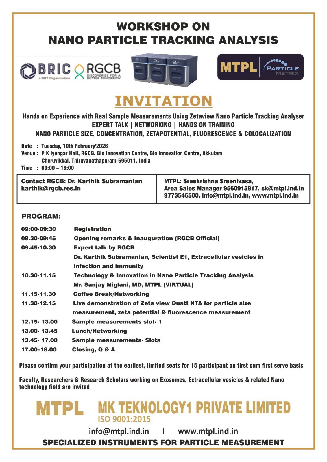 Faculty, Researchers & Research Scholars working on Exosomes, Extracellular vesicles & related Nano technology field are invited.